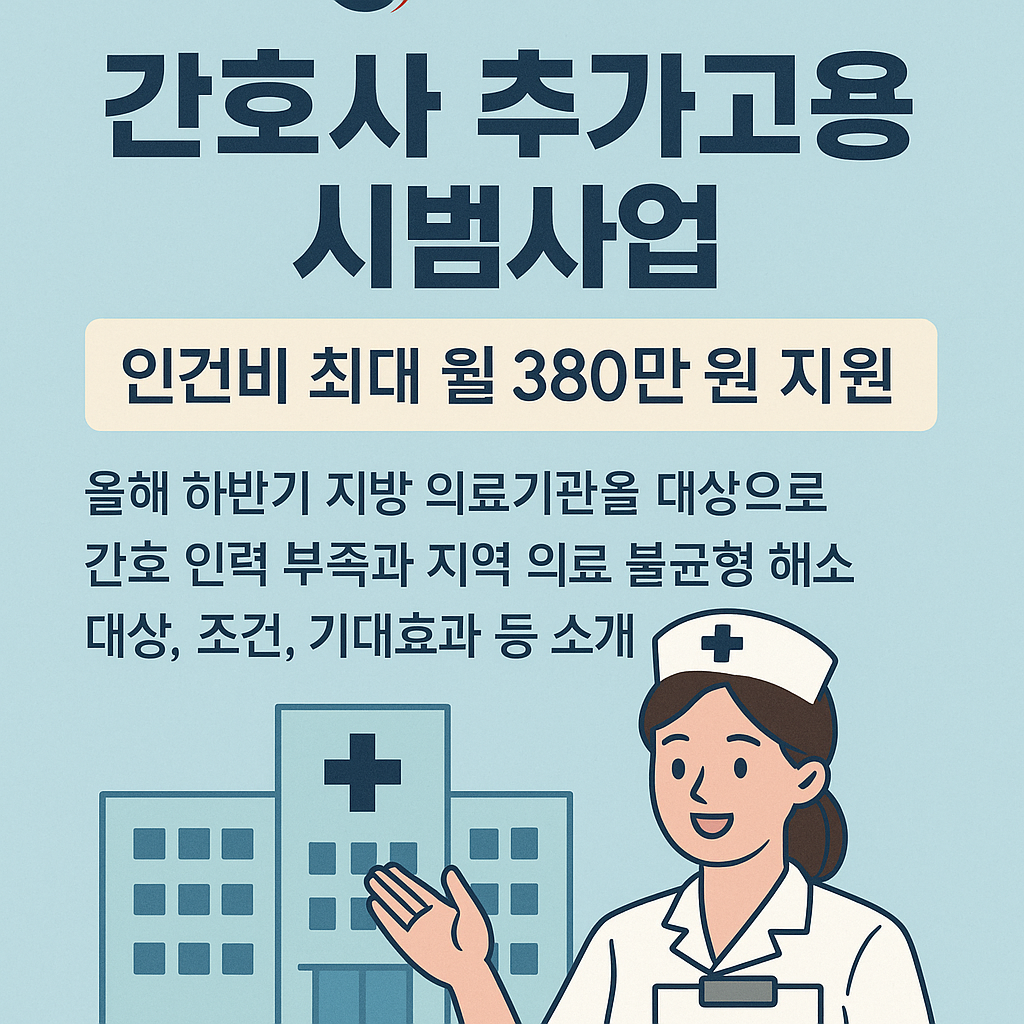 지방의료기관 간호사 인건비 지원 시범사업은 간호사 1인당 최대 월 380만 원의 인건비를 정부가 직접 지원함으로써, 의료 취약 지역의 간호인력 부족 문제를 해소하고자 하는 중요한 정책입니다. 병원 입장에서는 고용 부담이 줄어들고, 간호사는 보다 안정적인 근무환경을 제공받을 수 있어 모두에게 유익한 제도라 할 수 있습니다.