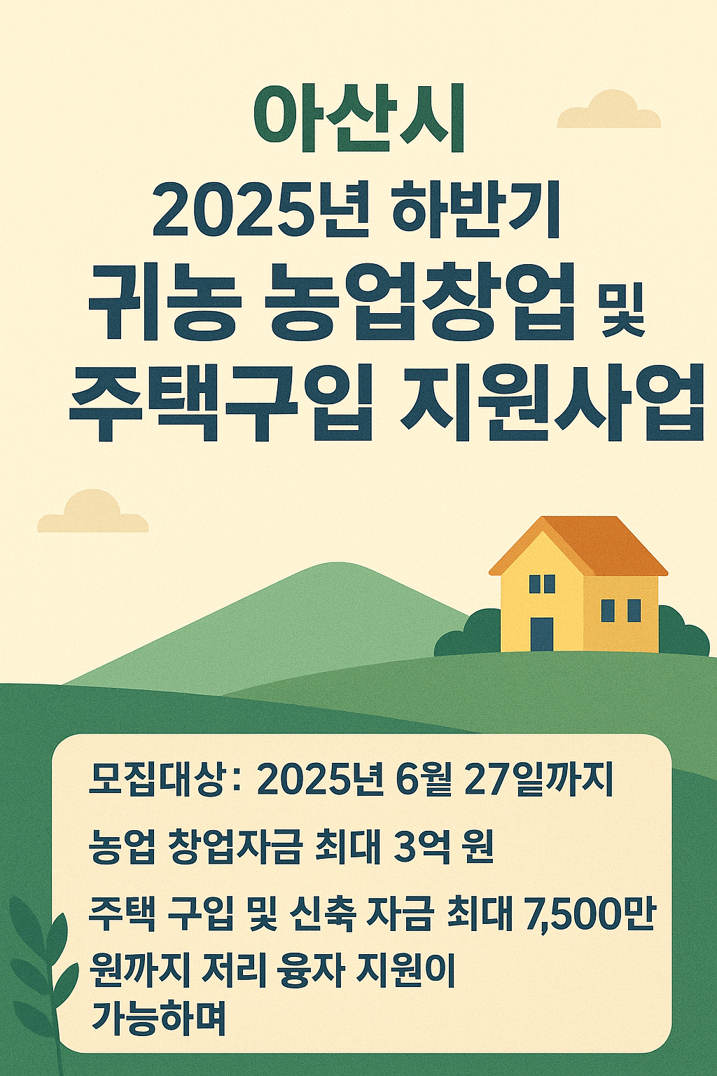 아산시가 추진하는 2025년 하반기 귀농 농업창업 및 주택구입 지원사업은
