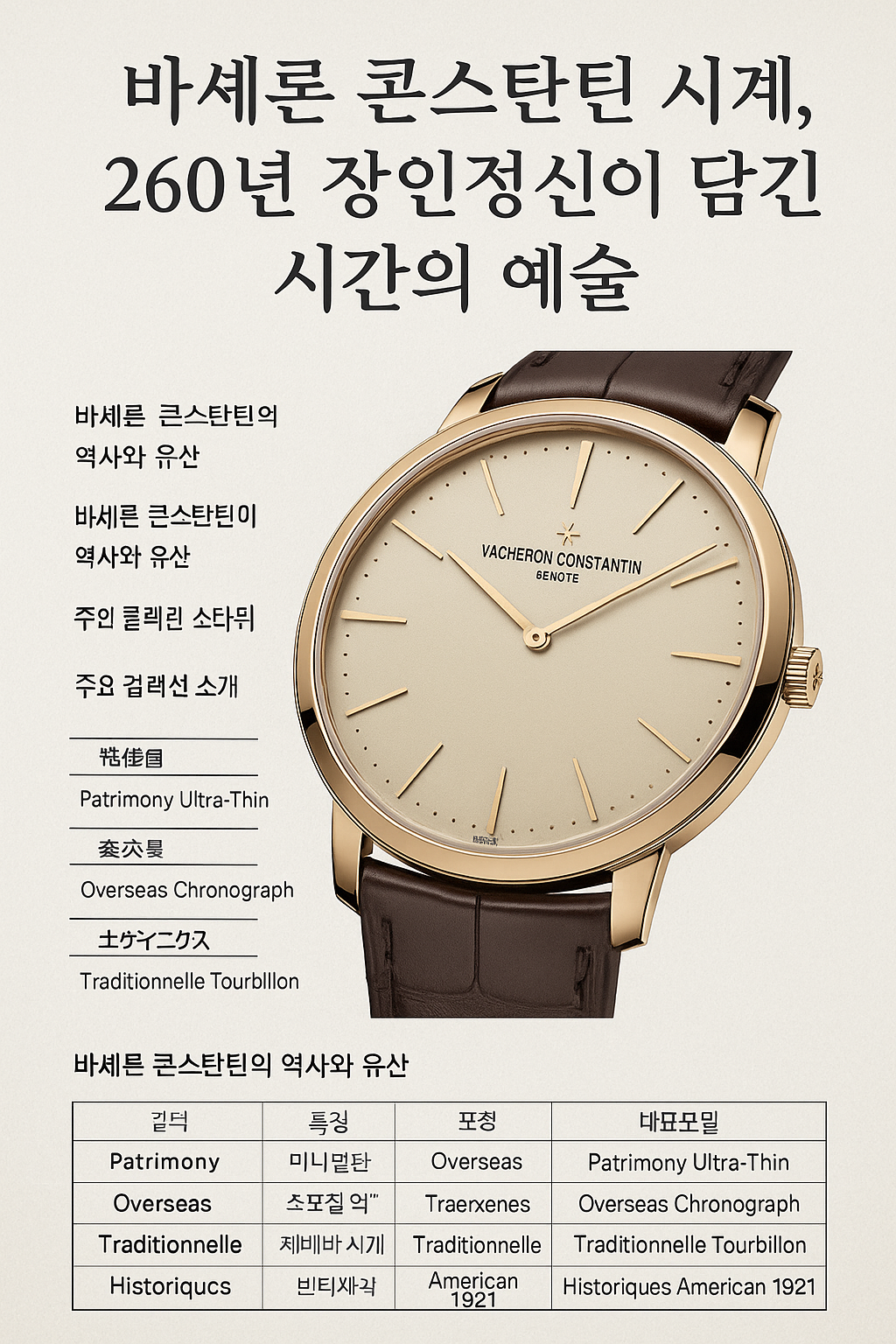 이번 글에서는 바쉐론 시계의 역사, 주요 컬렉션, 디자인 특징, 구매 가이드, 그리고 관리 방법까지 깊이 있게 다뤄보겠습니다.