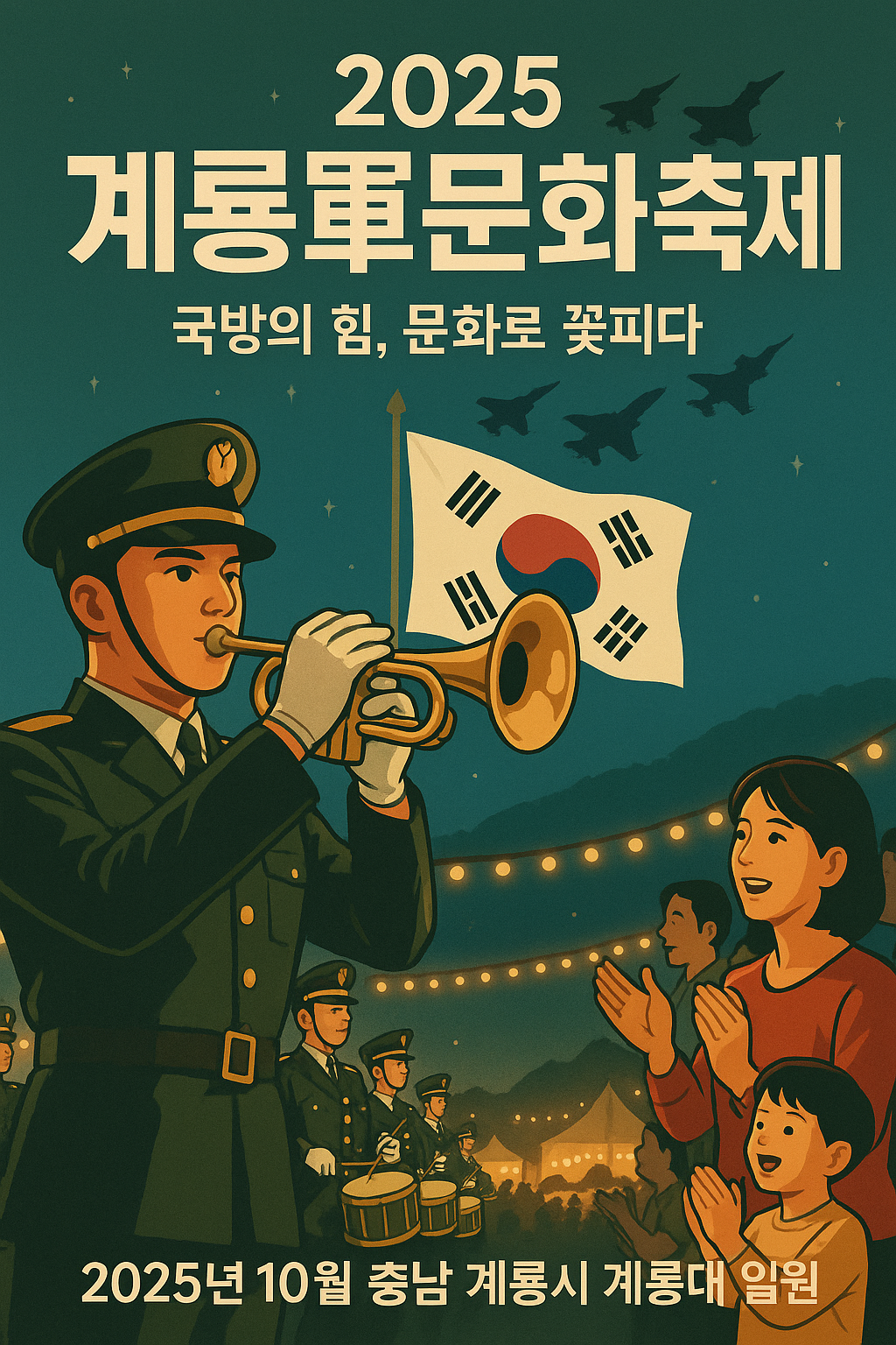 올해 가을, 의미 있고 알찬 하루를 보내고 싶다면 망설이지 말고 2025 계룡군문화축제를 방문해 보시기 바랍니다. 단순한 축제를 넘어, 색다른 경험과 감동을 안겨줄 이 축제는, 여러분의 일상에 오래도록 기억될 특별한 순간이 될 것입니다.